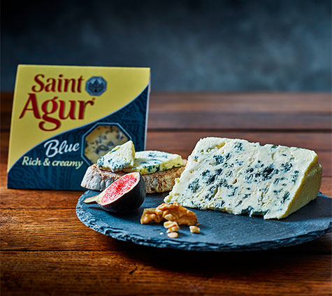 Saint Agur is a blue cheese everyone will love, with a fresh taste that balances creaminess with just a hint of tanginess. Coming from the volcanic hills of Auvergne, Saint Agur cheese is soft, and is just as tempting on its own or with bread, making it a great way to finish off your cheeseboard.
