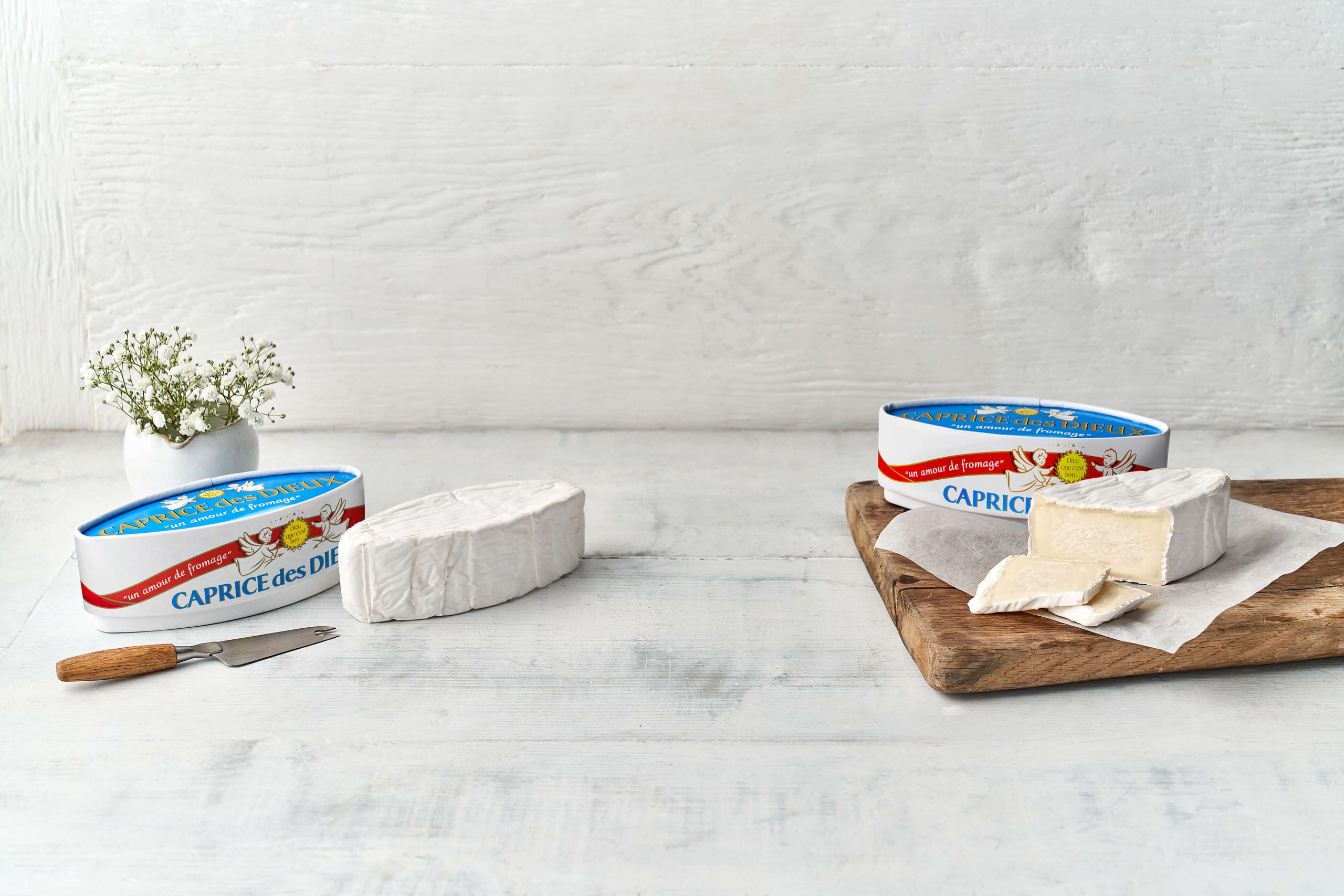 Created by Jean-Noël Bongrain after five years of research, Caprice des Dieux was born in the small village of Illoud in Haute-Marne in 1956. Its fine, white and velvety rind, its pure, fresh and melting heart give it straight away a place at the top of the cheese Olympics.