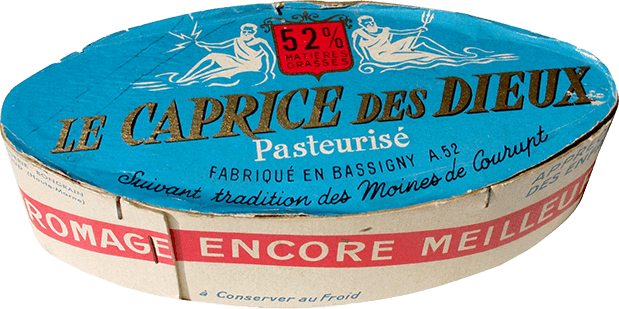 Its oval shape and blue colour suit it well, it is a joyful and gourmet nod to the round and square boxes of cheese of the time. On these wooden boxes still assembled by hand, Zeus and Poseidon take good care of this gourmet oval cheese. On June 21, 1956, the first package of Caprice des Dieux was sold! That’s it… the adventure begins!