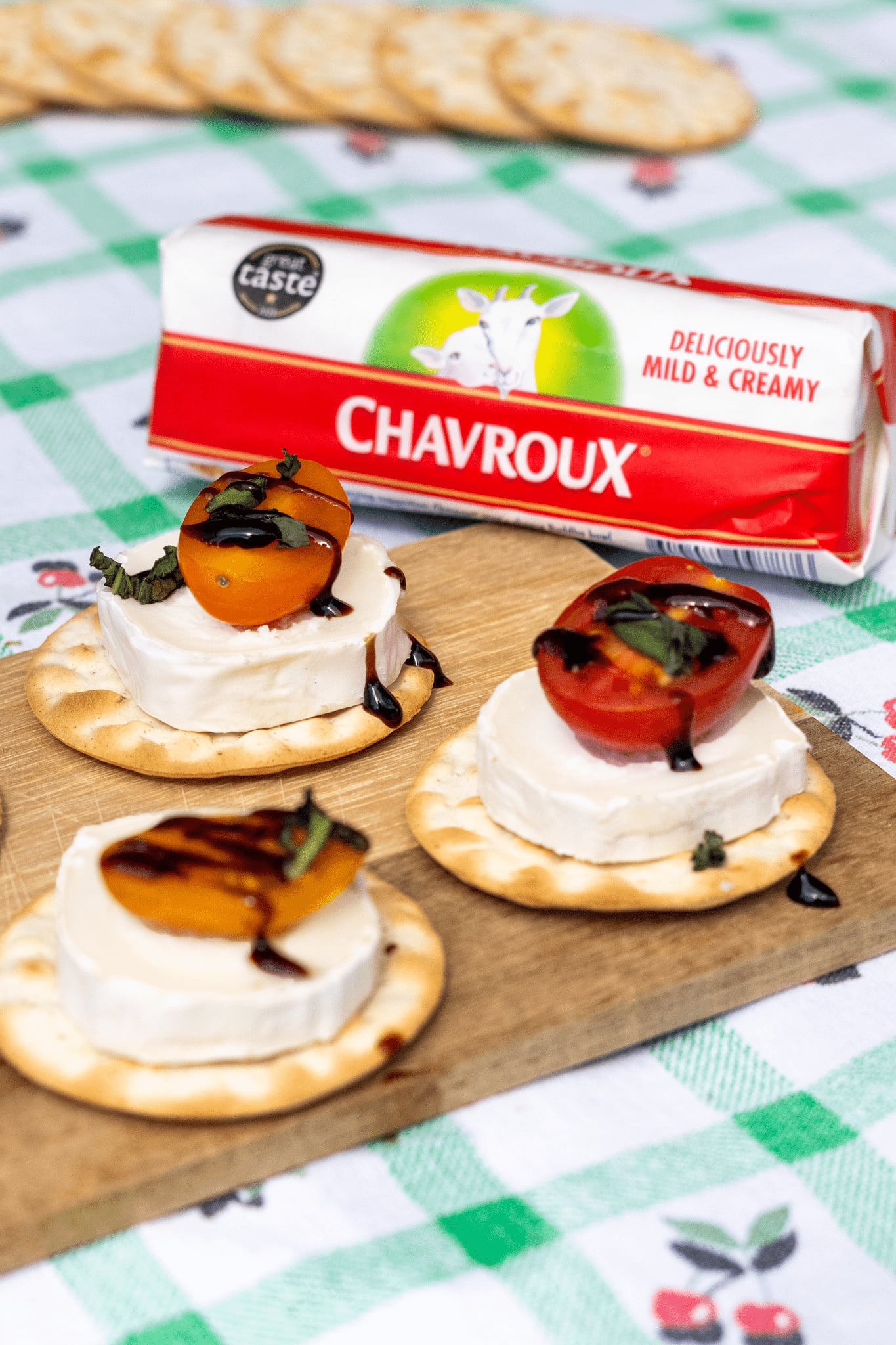 Slice the Chavroux Log goat’s cheese into thin rounds