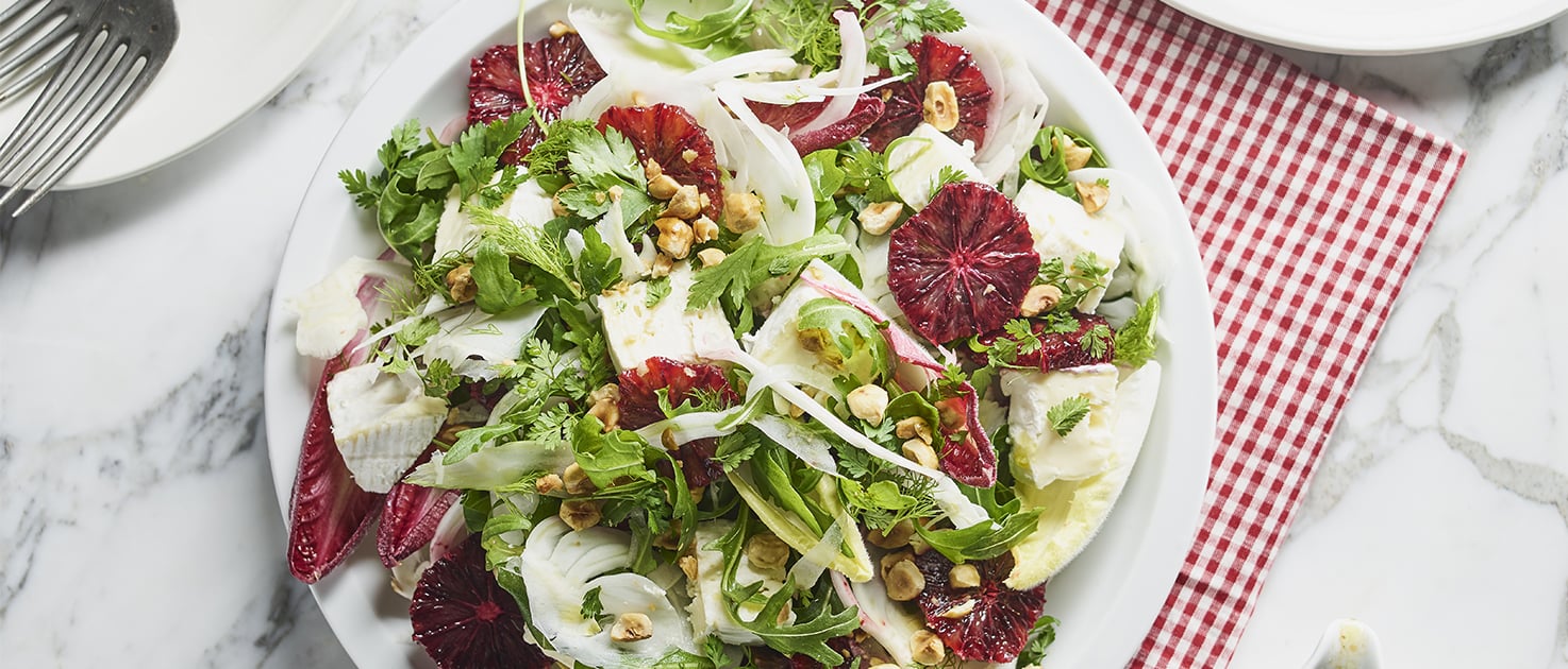 3. In a large bowl mix the orange segments, endive, chicory, rocket, sliced fennel