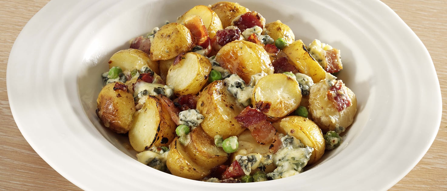 Gently mix the potatoes, bacon, onion and peas together.